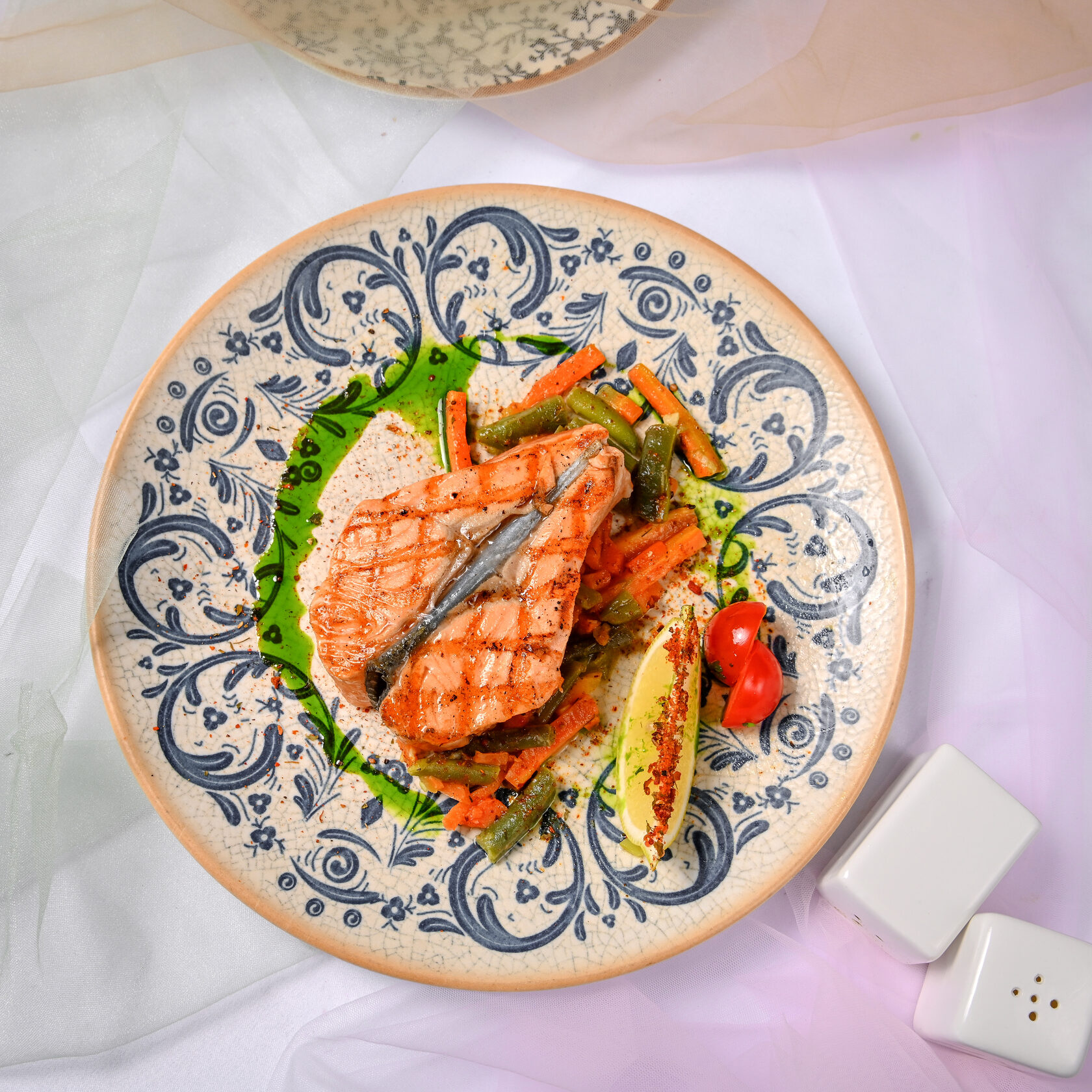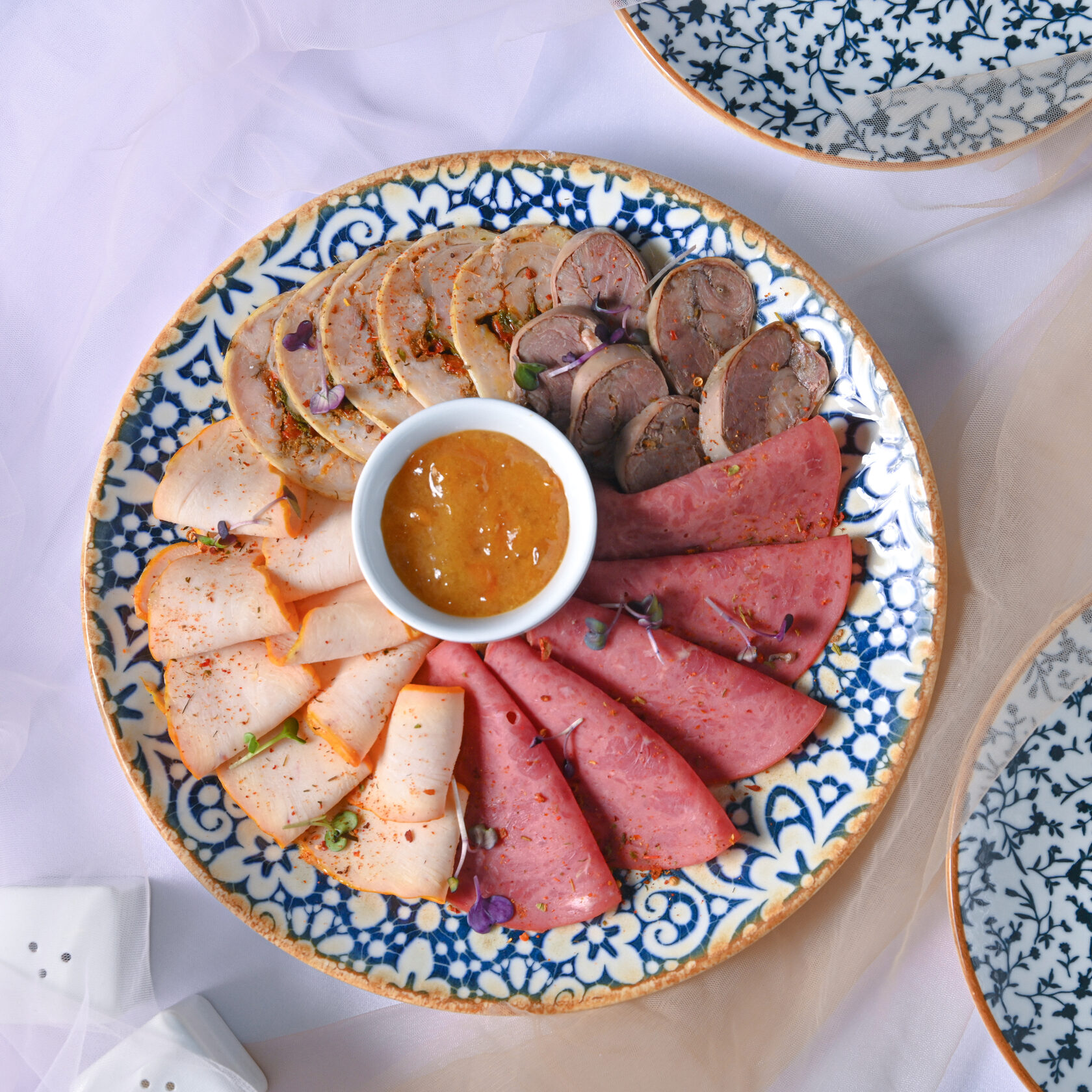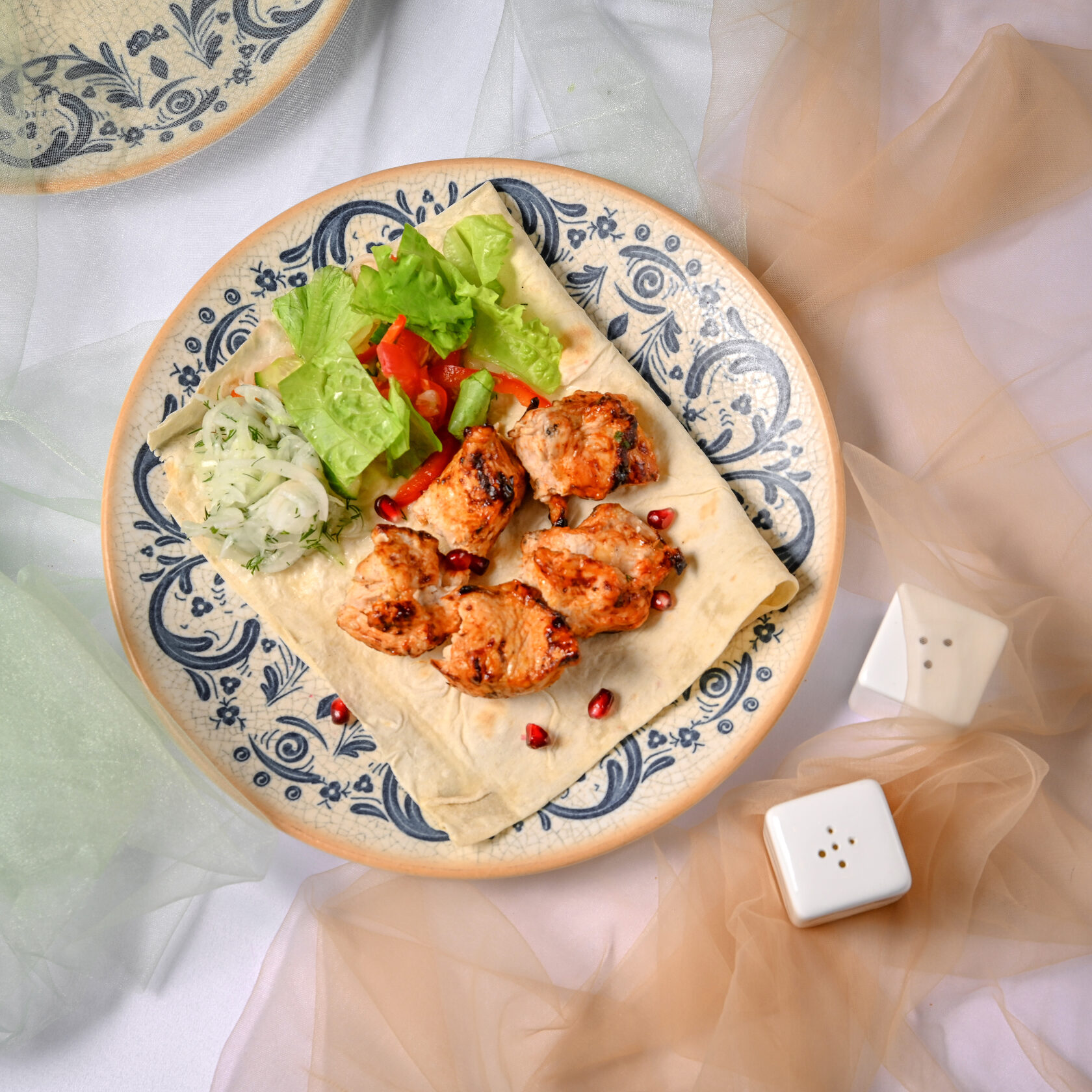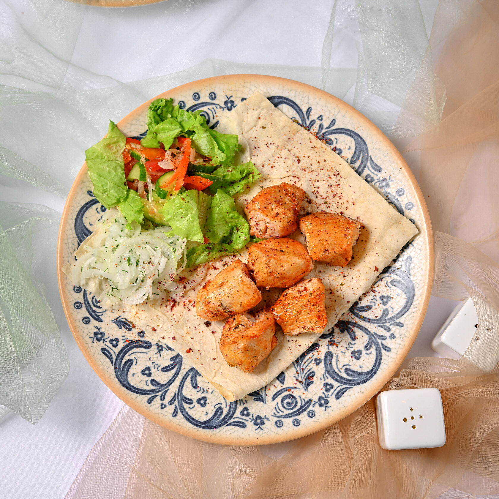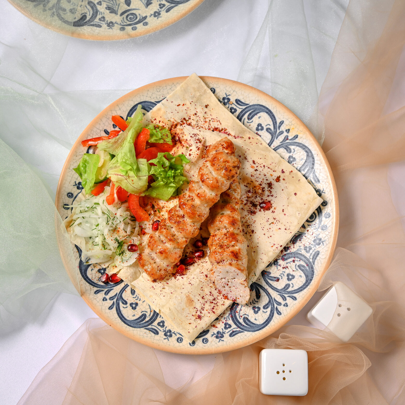 Каре барашка. Шашлыки: индейка, Pin-Up бедро, мякоть барашка. Люля-кебаб: курица, баранина, говядина. Картофельные дольки, маринованный лук, салат из свежих овощей. Подается с соусом тар-тар и домашней аджикой (1,5 кг).